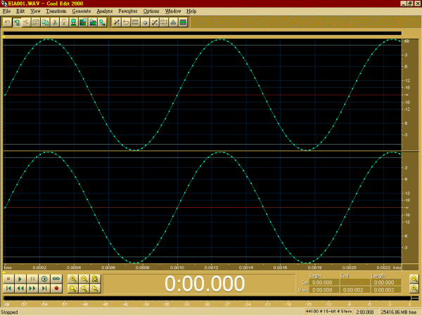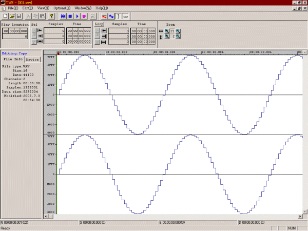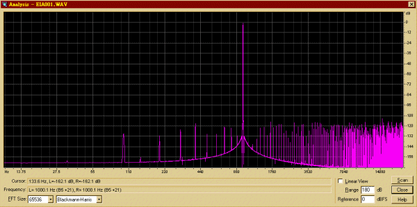The peak value of the same as CD of the EIA standard and positive full-scale is a value of/&h7FFF and 32767 negative peak value -32767/&h8001, this value becomes 0dB of the truth, and the signal source generated from the numeric character data digitally is necessary for 16Bit/44.1KHz sampling of WAV so that accuracy's not going out in the thing that the external is recorded (copy) may fill accuracy as the test sound source that is a natural thing to keep the accuracy of the sound.