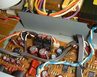 Then, I will see from the power supply. It is a usual power transformer in the thin core installed on the case with 1U, and as for the leakage of the flux of magnetic induction, it is large and the influence is causing it extreme to other equipment though the belt of copper has been rolled.
