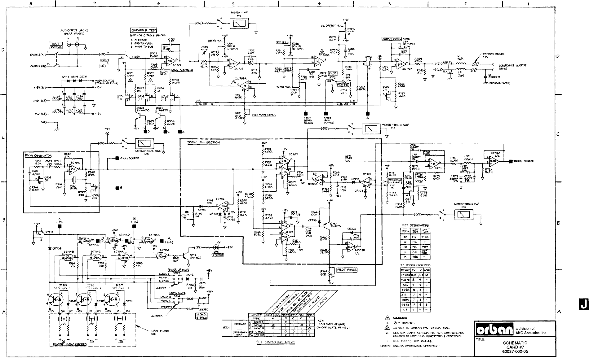 The modulator part of sound processor orban optimod 8100 that takes the world by storm ahead seems not to be known for a moment to things except hiding in the shadow of the processor. Card # 7 is a modulator, the circuit of the matrix method to use the operational amplifier is a simple surprisingly design, and if PLL is excluded, a basic part is composed of the operational amplifier about five. it simplifies to the point where a necessary part is destroyed like a toy FM transmitter, there is that adds unnecessary accessories that attract attention, and it doesn't exist in the thing. it is a thing that the thing that keeps all basic parts and is composed simply should mention specially as a professional machine. it is said that the number of parts is small, and as for the thing, the cause of the breakdown is reduced by half and the sound doesn't collapse because passing an active element is few recalling the thing when recorder AMPEX for the professional and the circuit chart of DENON were seen in old times, and having only of about 1/3 of the public welfare machines the circuit component, it is true not to permit unnecessary interrupt to the circuit either so that the professional machine may not need the accessories circuit that the amateur likes at all and improve a basic performance. it seems to be common in now and old times and to need to say that