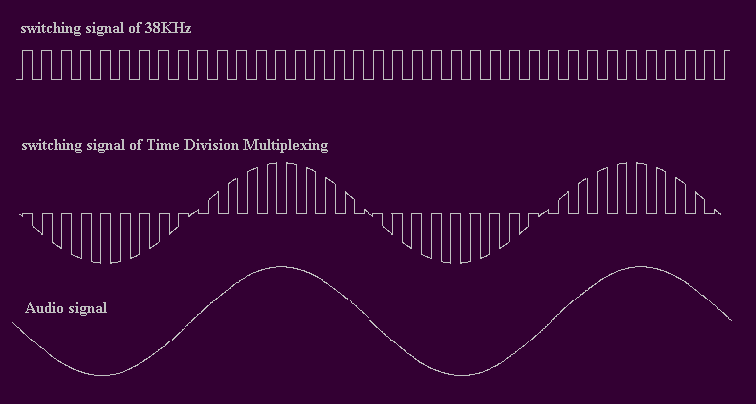 rough timesharing signal cut by the signal of 38KHz that is unlimited and near the sine